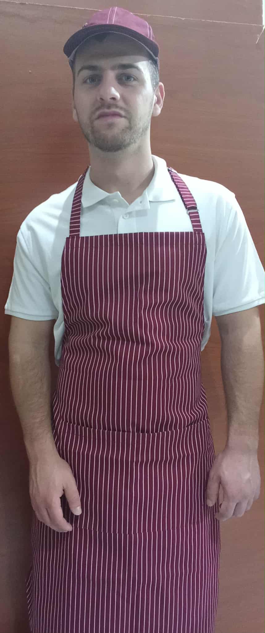 Ριγέ ποδιά σε μαύρο και μπορντό.