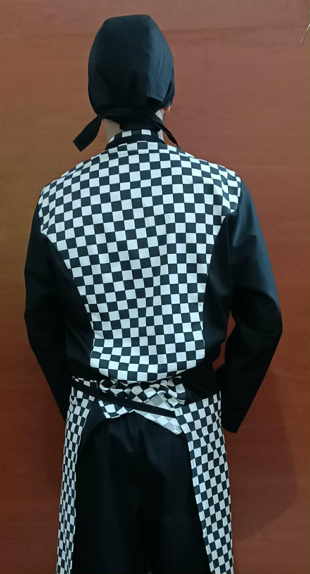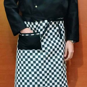 Μαύρο σακάκι σεφ. Κουμπώνει εξωτερικά με τρουκ, έχει διπλό τσεπάκι στο μανίκι για στυλό ή θερμόμετρο.